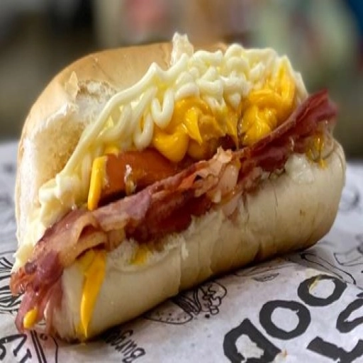 hot bacon e queijo acompanha: salsicha, vinagrete, batata palha, catchup, mostarda, milho, cheddar, catupiry e Bacon e Q... Ver completo