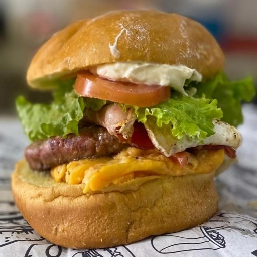 Hamburguer 120g Artesanal, Queijo Prato, Bacon, Ovo, Maionese Defumada , alface ,Tomate e cheddar