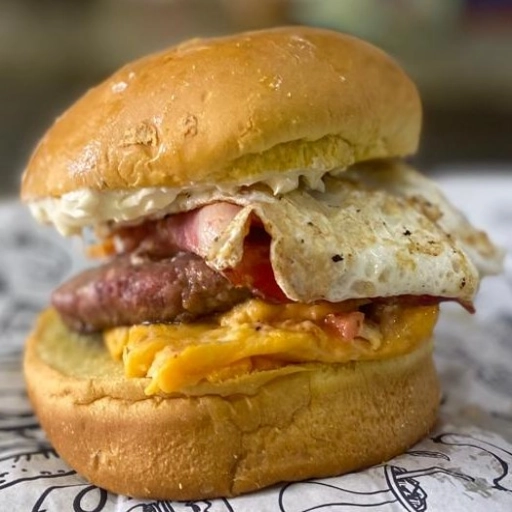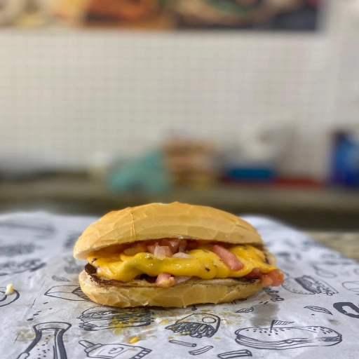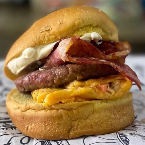 Hamburguer de 120g Artesanal, queijo prato, Pao de Brioche, Bacon , Ovo e Maionese Defumada