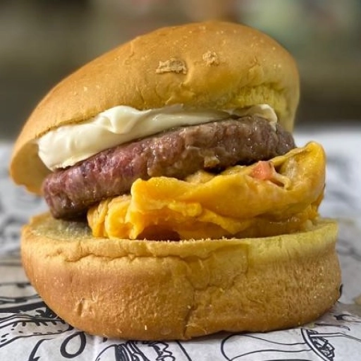 Hamburguer de 120g Artesanal, Pao de Brioche, Queijo prato, Ovo, Maionese Defumada